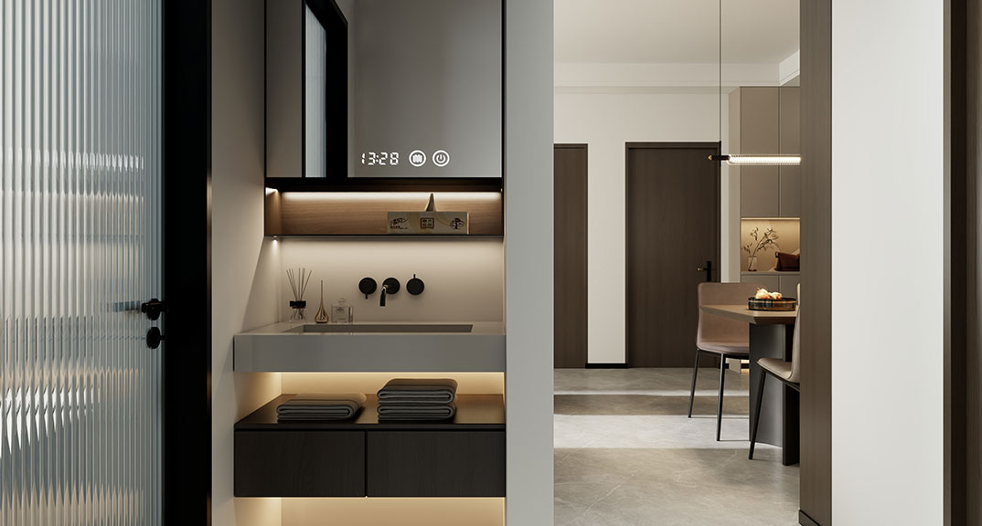 悅動灣109㎡三室兩廳衛(wèi)生間現(xiàn)代簡約風格裝修案例效果圖
