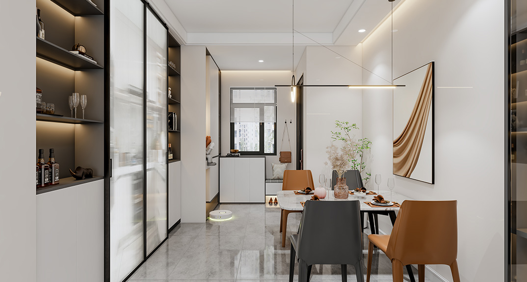 湖畔名邸112㎡四室兩廳餐廳現(xiàn)代風(fēng)格裝修案例效果圖