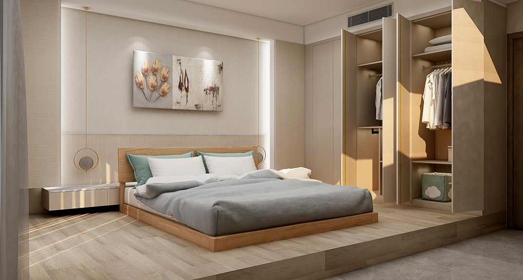 秦樓社區(qū)120㎡三室兩廳臥室現(xiàn)代風(fēng)格裝修案例效果圖