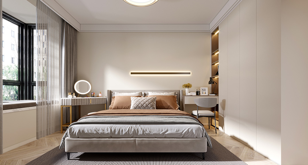 湖島世家128㎡三室兩廳北臥現(xiàn)代簡約風(fēng)格裝修案例效果圖