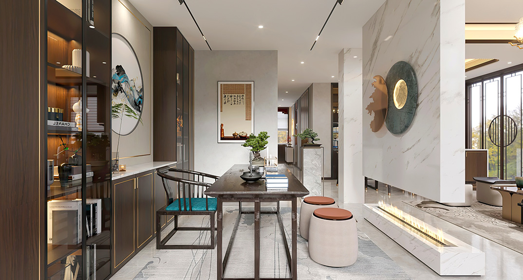 仟佰墅150㎡別墅上疊新中式風(fēng)格裝修案例效果圖
