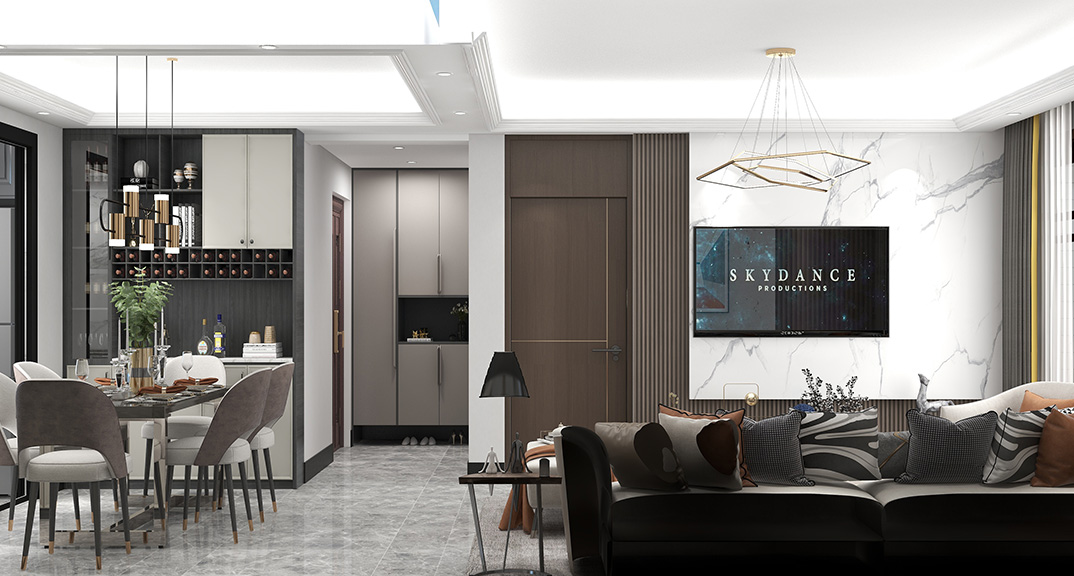 保利時代98㎡三室兩廳餐廳輕奢風(fēng)格戶型研發(fā)效果圖