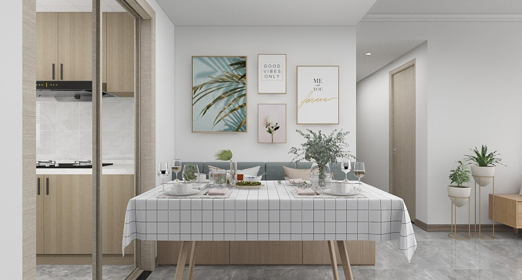 保利時代98㎡三室兩廳餐廳原木風戶型研發(fā)效果圖