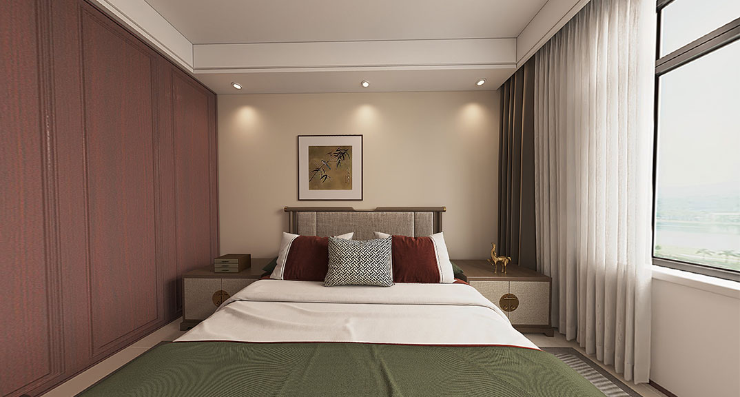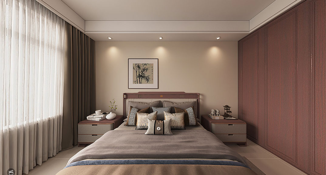 這是一套新中式風(fēng)格,以中國傳統(tǒng)文化內(nèi)涵為設(shè)計(jì)元素,在室內(nèi)布置、色調(diào)以及家具、陳列的造型等方面,吸取傳統(tǒng)裝飾。中式風(fēng)格的家具對稱、簡約、樸素富有文化內(nèi)涵,體現(xiàn)主人較高審美與社會地位。 中式家具裝修風(fēng)格的設(shè)計(jì)多采用簡潔、硬朗的直線條,不僅迎合了中式家具追求內(nèi)斂、質(zhì)樸的設(shè)計(jì)風(fēng)格,還反映出現(xiàn)代人追求簡單生活的居住要求,使中式風(fēng)格更加實(shí)用,更富有現(xiàn)代感。