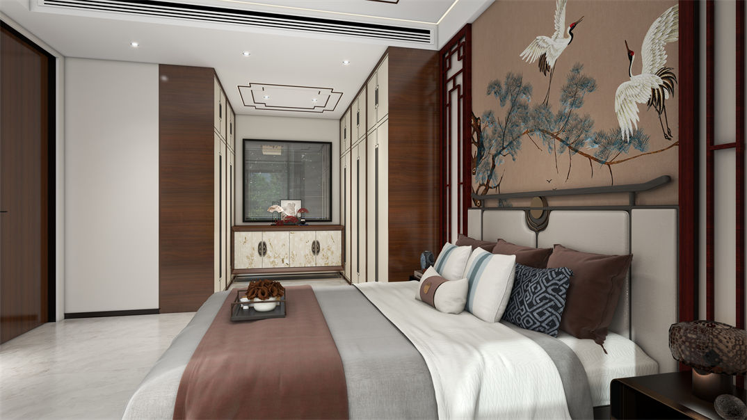 青島裝修效果圖-青特云鏡170㎡-新中式效果圖案例-東方家園裝飾
