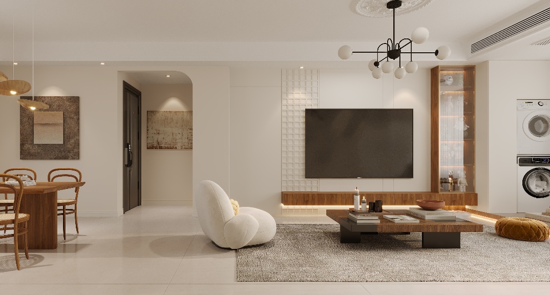 青島裝修效果圖-綠城汀蘭143㎡裝修-中古風(fēng)裝修效果圖-東方家園裝飾