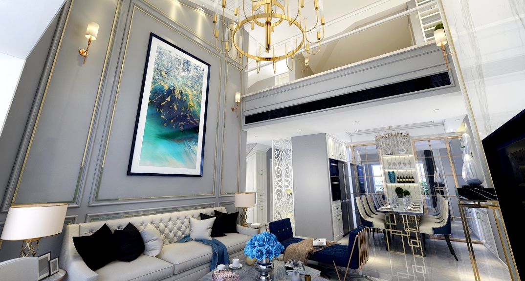 青島裝修公司-金鳳凰銘品復(fù)式-美式輕奢風(fēng)格-東方家園裝飾