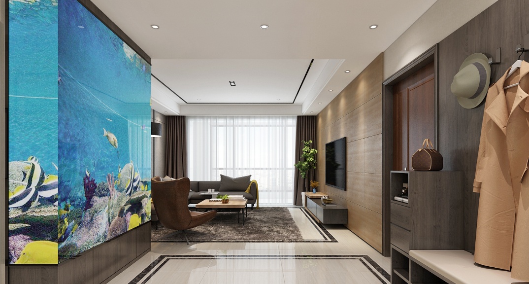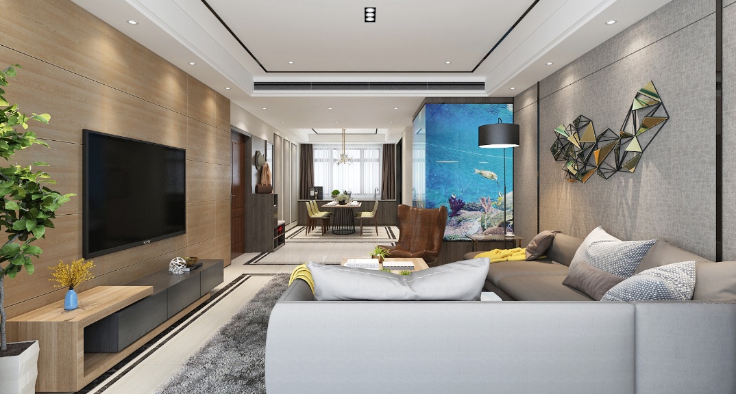 本案以現(xiàn)代港式風(fēng)格設(shè)計(jì),進(jìn)門的魚缸在靜止的空間中平添了一份靈動(dòng)靚麗的風(fēng)景線??蛷d體現(xiàn)了主人的品味,地位,也是交友娛樂的場(chǎng)合,影視墻凹凸線條的護(hù)墻板很好的隱藏了孝親房的門讓整個(gè)空間融為一體。設(shè)計(jì)注重居室的實(shí)用性,而且還體現(xiàn)了工業(yè)化社會(huì)生活的精致與個(gè)性,符合現(xiàn)代人的生活品位。在處理空間方面以空間寬敞、內(nèi)外通透,在空間平面設(shè)計(jì)中追求不受承重墻限制的自由。墻面、地面、頂棚以及家具的陳設(shè)乃只燈具器皿等均以簡(jiǎn)潔的造型、純潔的質(zhì)地、精細(xì)的工藝為特征,強(qiáng)調(diào)形式體現(xiàn)出一定的文化品位。在色彩運(yùn)用上,選擇柔和的光線,加之原木色家具呈現(xiàn)生活自然舒適性。