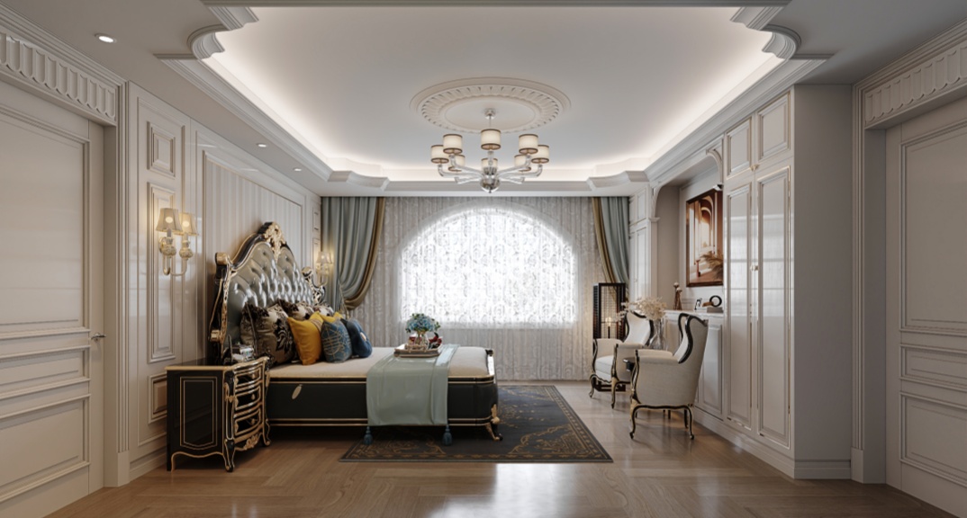 三層為主人私享空間。主臥寬敞明亮,配備獨立衣帽間和衛(wèi)浴,營造奢華舒適的休憩環(huán)境??团P可作為備用房間,滿足多樣化需求。